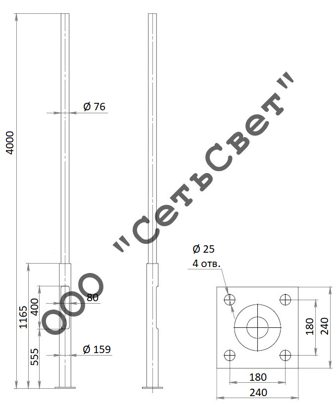 - Опора парковая ОП2(ф)-4,0-1,0 г.ц. (159/76 мм)