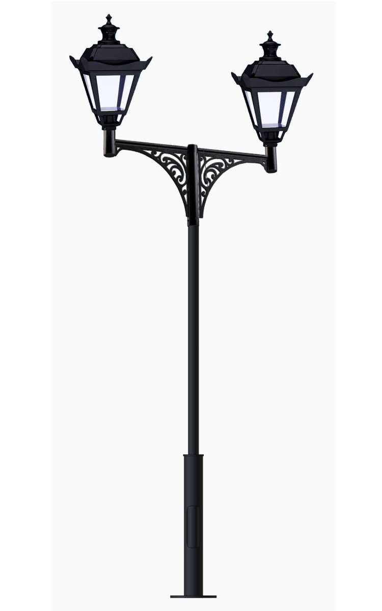 Осветительные комплексы «Пушкинская Роса-2» предназначены для установки осветительных приборов на территории коттеджных посёлков, спальных районов городов, скверов, пешеходных зон, парковых аллей, городских кварталов, автозаправочных станций, автомобильных парковок и прилегающих территорий общественных зданий. Они имеют изысканный внешний вид и могут использоваться как декоративный элемент исторических мест. Осветительные комплексы имеют защитный слой, созданный при помощи метода горячего цинкования. Такое покрытие предохраняет их от разрушительного влияния окружающей среды и способствует тому, что в любых климатических условиях изделия могут использоваться на протяжении тридцати лет. Кронштейны этой серии устанавливаются и фиксируются на верхнем торце опоры. Для комплектации «о» крепежные элементы располагаются на обечайке кронштейна, для комплектации «ф» – в верхней части ствола опоры. Изделия представлены в вариантах с одним или двумя рожками. Стандартный угол их наклона составляет 90 градусов. Кронштейны имеют различные варианты декора и приспособлены, в основном, для венчающих торшерных светильников. При этом ряд моделей можно изменять в соответствии с интерьером и условиями установки.